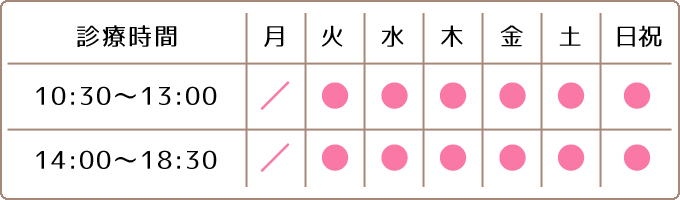 休診日:火曜日 受付は午前午後とも終了30分前まで